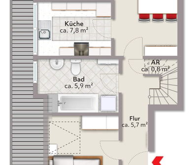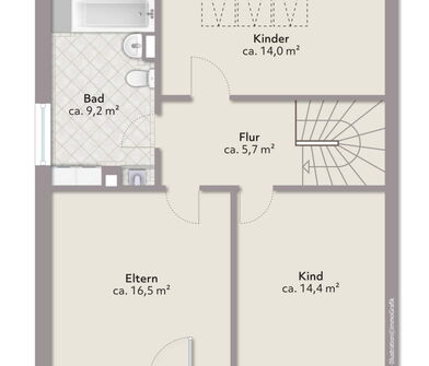 - Tageslichtbad im Dachgeschoss mit Dusche und Wanne