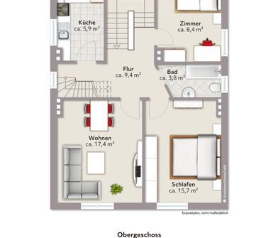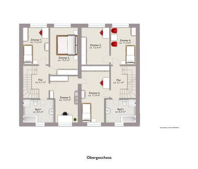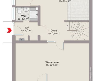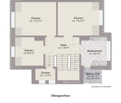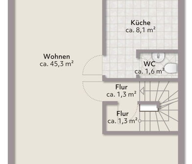 - Wohnfläche verteilt auf Erdgeschoss, Obergeschoss, Zwischenetage und Dachboden