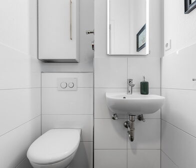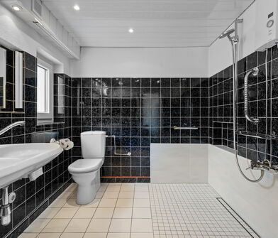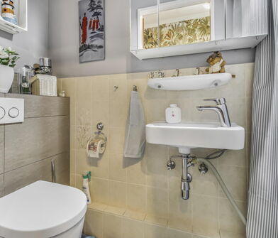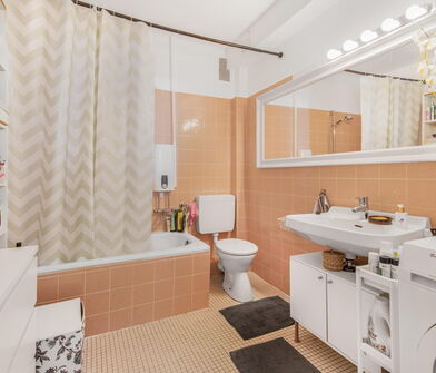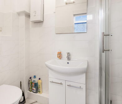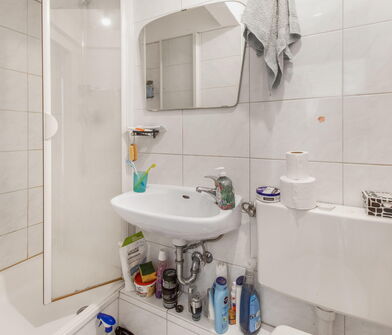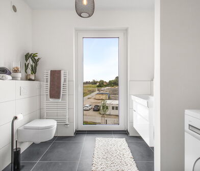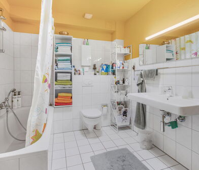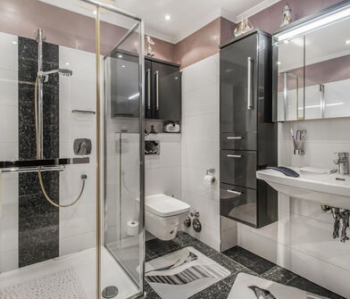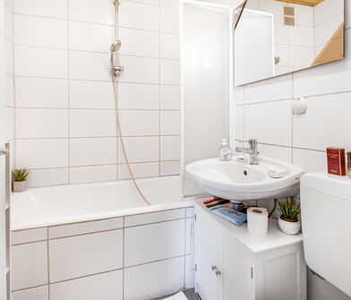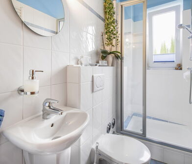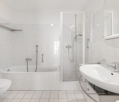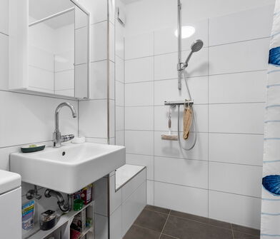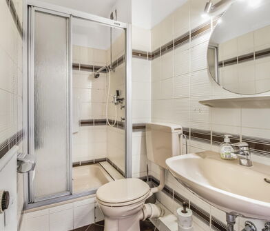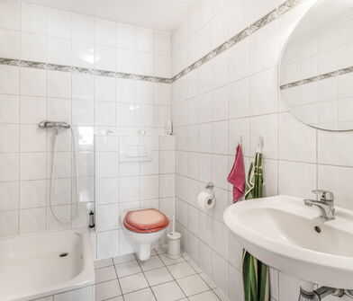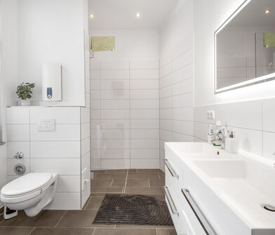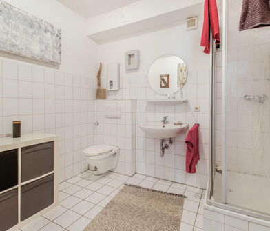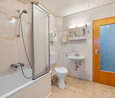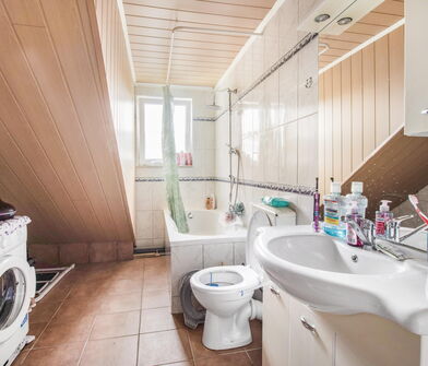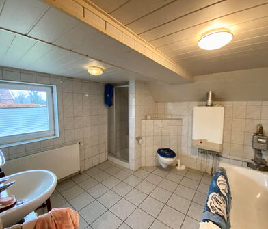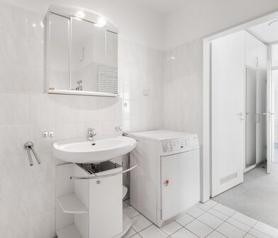 - Großes Bad mit Dusche, Wanne und Anschluss für die Waschmaschine