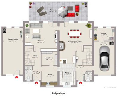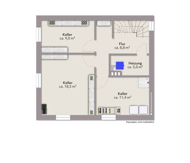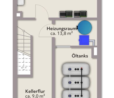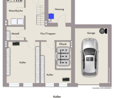 - Voll ausgebauter Keller mit vielseitigen Nutzungsmöglichkeiten (z. B. Partyraum, Abstellfläche)