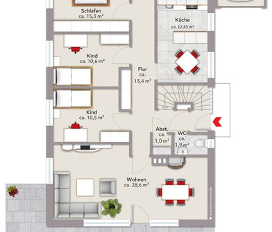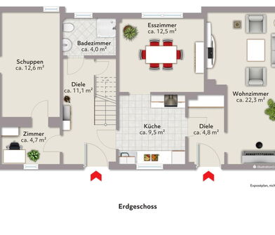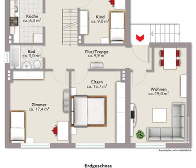 - Großzügiges Wohnzimmer + zusätzliches Zimmer im Erdgeschoss