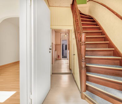 Dieses im Jahr 1912 erbaute Reihenendhaus überzeugt durch seinen außergewöhnlichen Grundriss und bietet viel Raum für kreative Gestaltungsmöglichkeiten. Auf insgesamt vier Ebenen – vom Keller bis zum Dachboden – eröffnet sich ein vielseitiges Wohnkonzept, das sich ideal für Familien oder Paare eignet, die sich ihren eigenen Wohntraum verwirklichen möchten.
