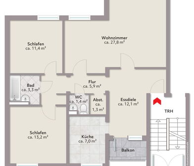 Aktuell ist die Wohnung von den Eigentümern bewohnt. Ab dem 1. Quartal 2026 kann die Immobilie frei geliefert werden.