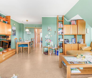 Diese barrierefreie 3-Zimmer-Wohnung liegt in der zweiten Etage eines gepflegten Mehrfamilienhauses, das sich architektonisch von der Nachbarbebauung abhebt. Direkt nebenan befindet sich die AWO, wodurch für Senioren oder Menschen mit Unterstützungsbedarf auf Wunsch zusätzliche Serviceleistungen wie ein ambulanter Pflegedienst unkompliziert hinzugebucht werden können.