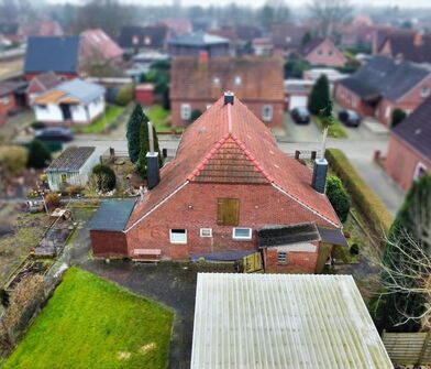 Ob Abriss und Neubau oder doch Sanierung? Auf diesem ca. 865 m² großen Grundstück kann auf jeden Fall Ihr Traumhaus entstehen. Aktuell steht hier ein sanierungsbedürftiges Fehnhaus, welches ca. 1927 erbaut wurde. Im Erdgeschoss des Wohnhauses steht Ihnen ein Wohnzimmer, ein Esszimmer, ein Schlafzimmer, eine Küche und ein Bad zur Verfügung. Weitere drei Zimmer mit separatem Eingang sind zur Zeit nicht bewohnbar, bieten Ihnen aber eine Ausbaureserve. Im Dachgeschoss erwarten Sie zwei weitere kleine Zimmer zur freien Nutzung. Ein Energieausweis befindet sich in Vorbereitung. Habe ich Ihr Interesse geweckt? Dann vereinbaren Sie gerne einen Besichtigungstermin mit mir.
